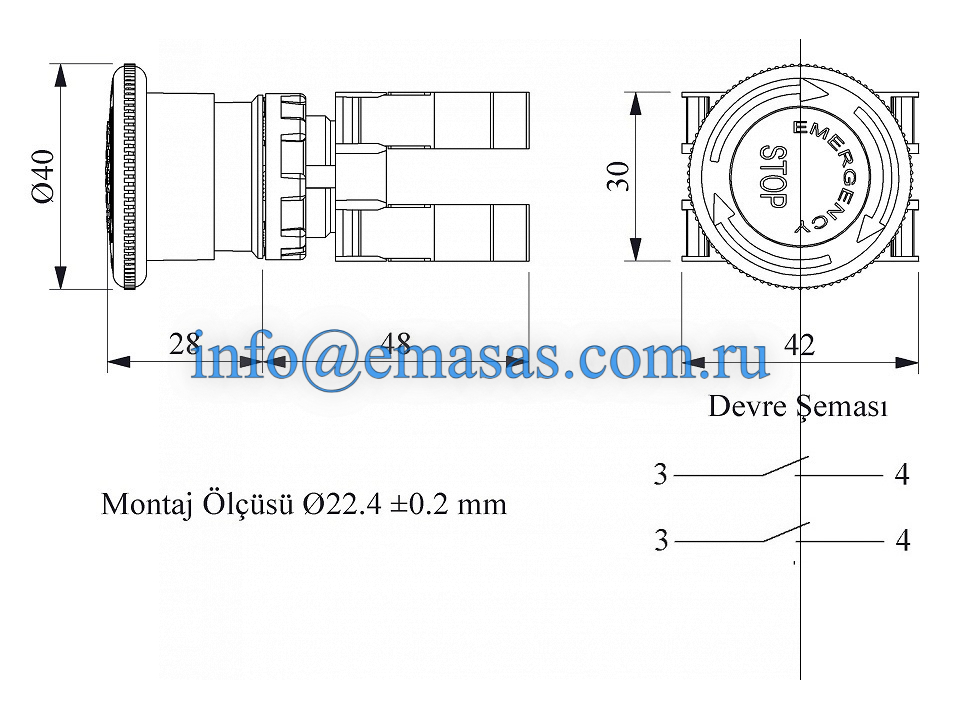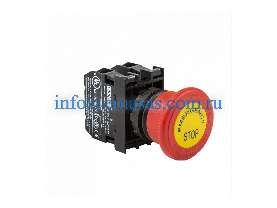 Главная/ Продукция / Кнопки управления / Серии B, 22 мм, IP50 / Аварийные кнопки / Кнопка аварийная с маркировкой "Грибок" красная (2НО), B101EE