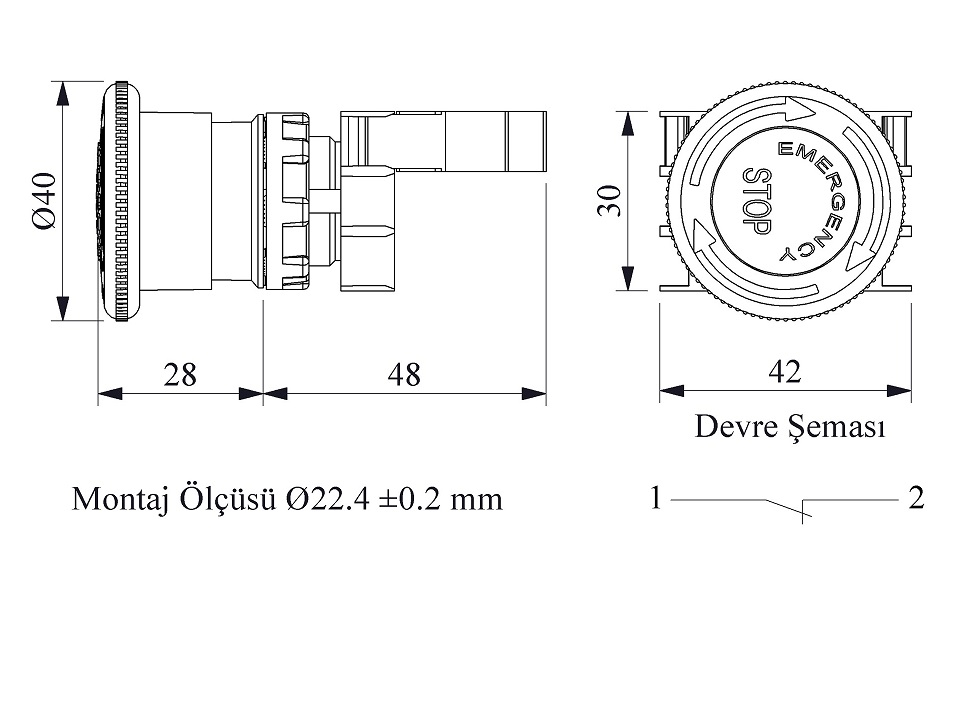 Главная/ Продукция / Кнопки управления / Серии B, 22 мм, IP50 / Аварийные кнопки / Кнопка аварийная с маркировкой "Грибок" красная (1НЗ), B200EE