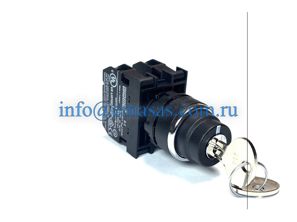 Главная/ Продукция / Кнопки управления / Серии B, 22 мм, IP50 / Кнопки с ключом / Кнопка с ключом 2-0-1, возвратная из одного положения, ключ вынимается в положении 0 (2НЗ), B202AA31