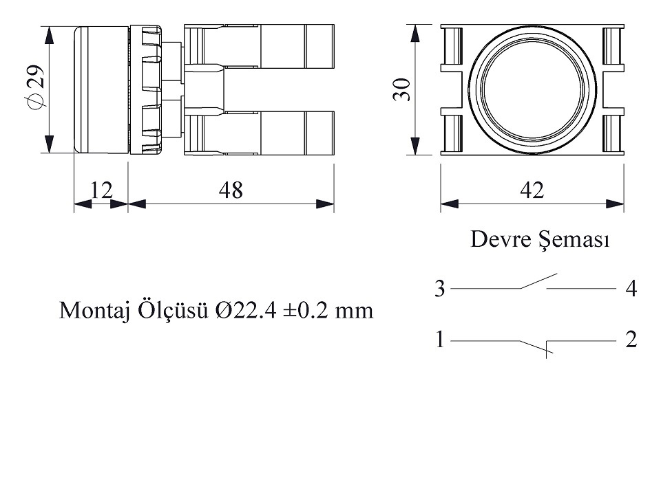 Главная/ Продукция / Кнопки управления / Серии B, 22 мм, IP50 / Кнопки без фиксации / Кнопка без фиксации, черная (1НО+1НЗ), B102DН