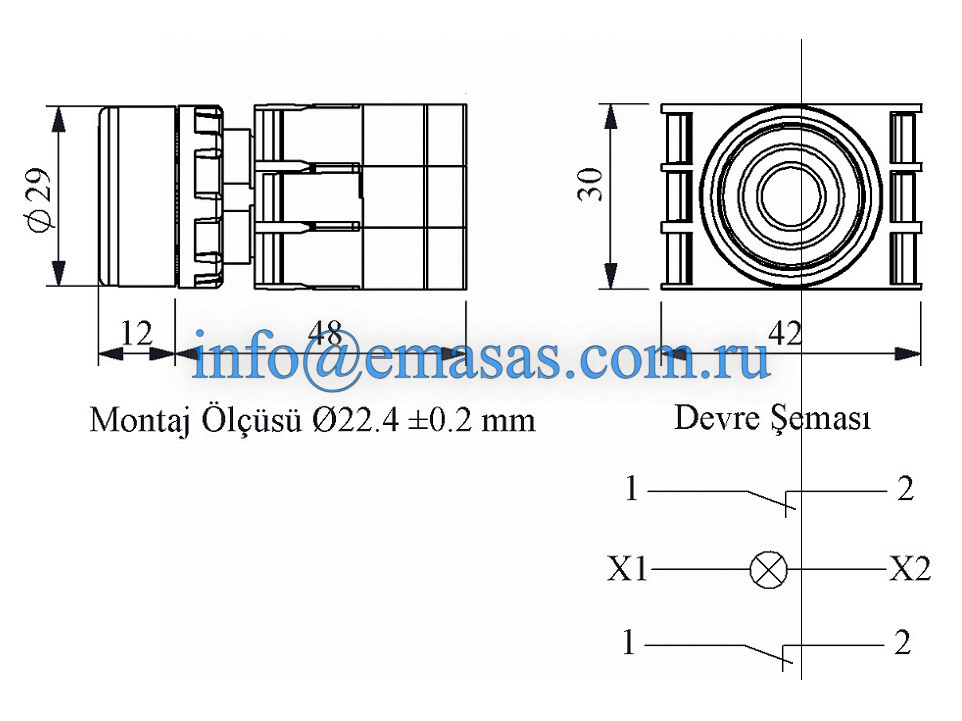 | Установочный диаметр | 22 мм | ||||||