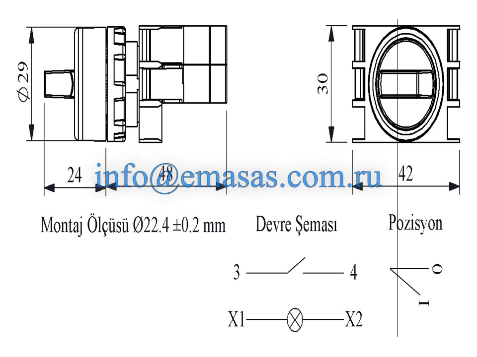 Главная/ Продукция / Кнопки управления / Серии B, 22 мм, IP50 / Переключатели с подсветкой / Переключатель 0-1 с фиксацией, с подсветкой-светодиод 100-230V AC зеленый (1НО), B1Y0SL20Y