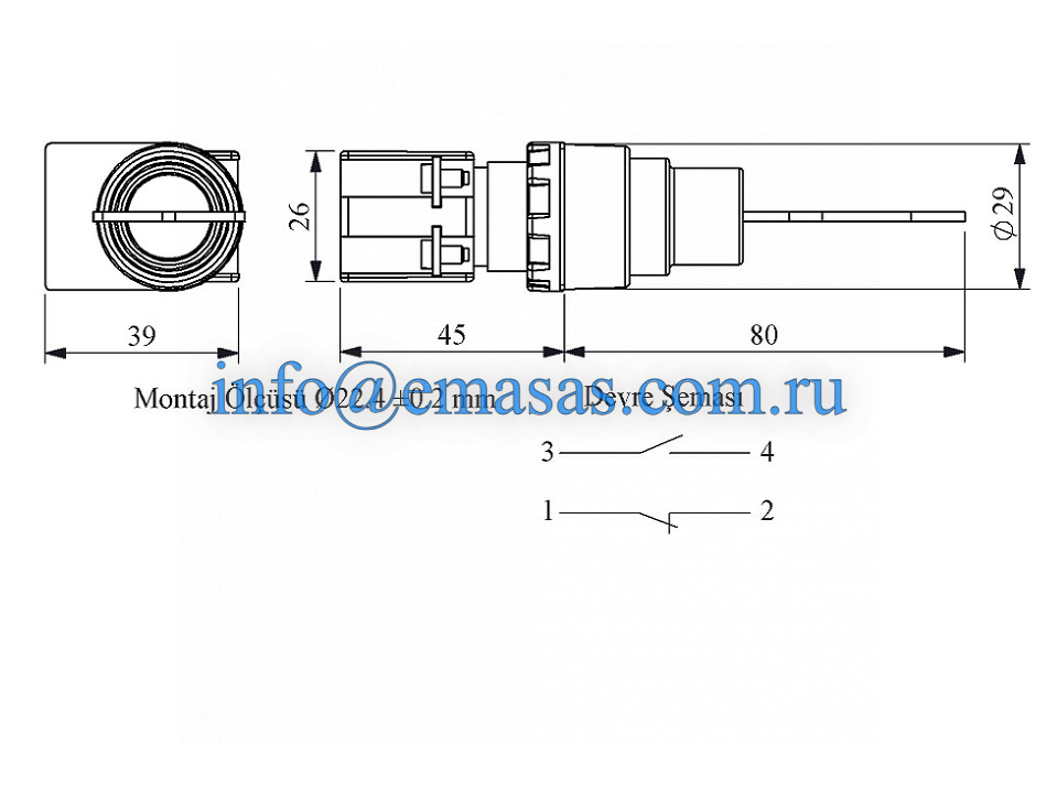 | Установочный диаметр | 22 мм | ||||||