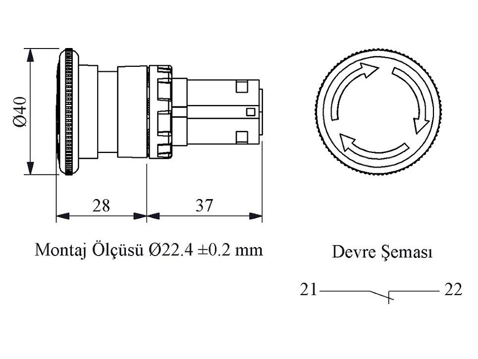 | Установочный диаметр | 22 мм | ||||||