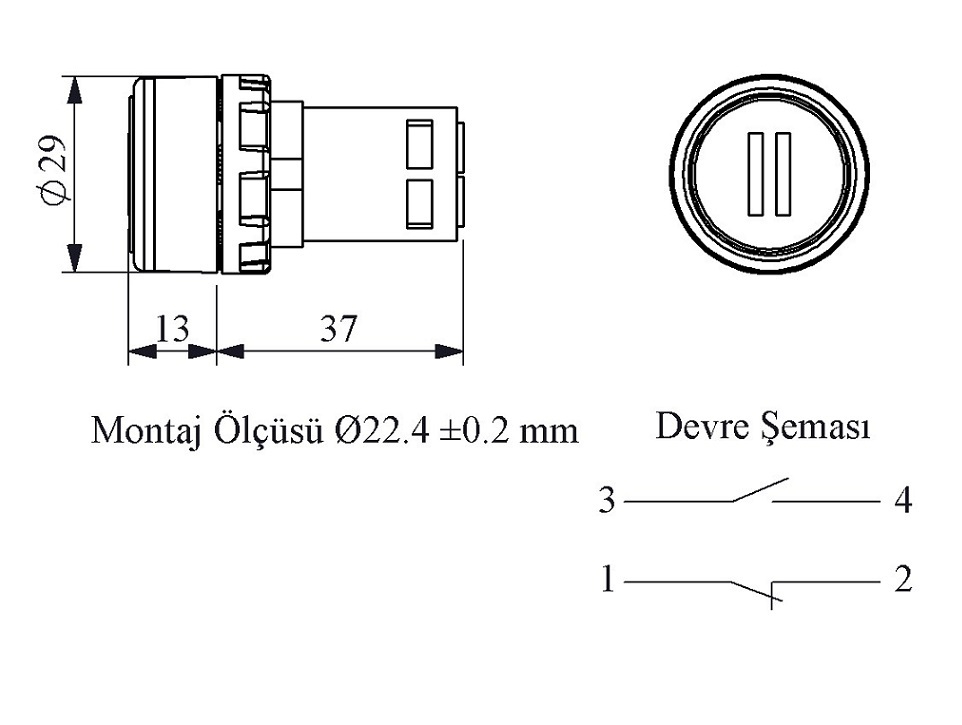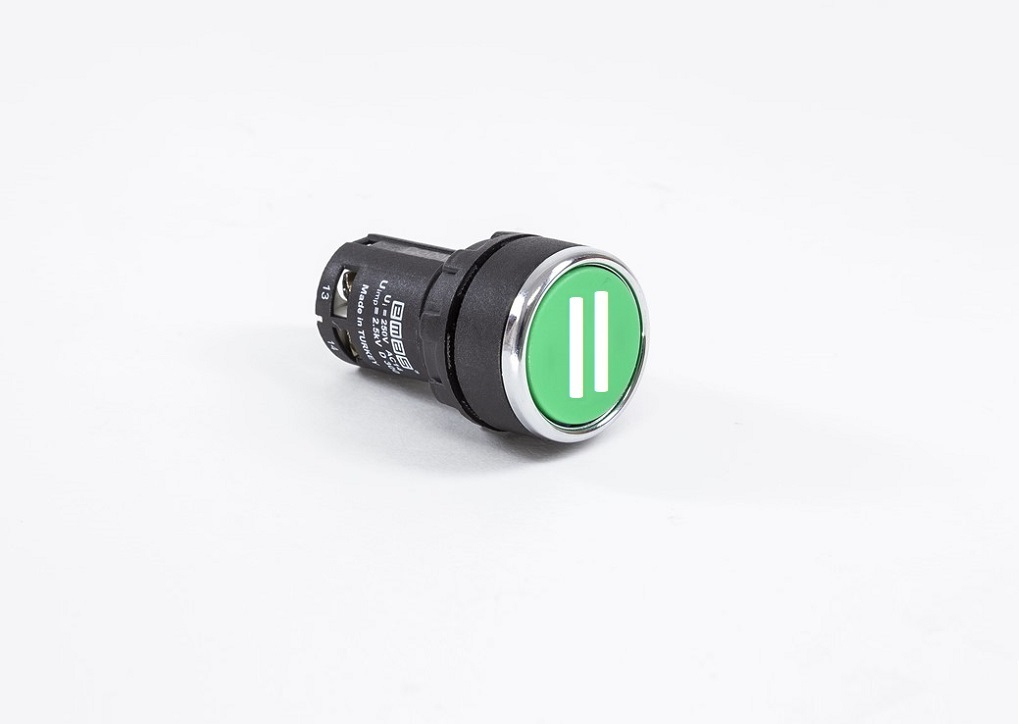 Главная/ Продукция / Кнопки управления / Серии MB, 22 мм, IP50 / Кнопки без фиксации / Кнопка моноблочная без фиксации, символ "II", зеленая (1НО), MB100DY2