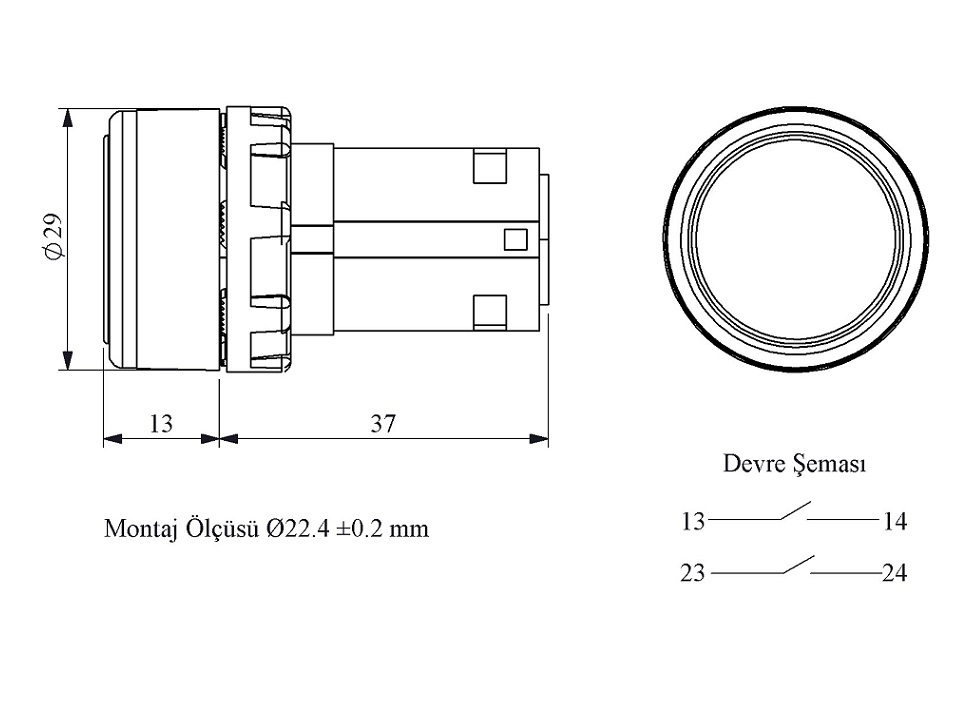 Главная/ Продукция / Кнопки управления / Серии MB, 22 мм, IP50 / Кнопки без фиксации / Кнопка моноблочная без фиксации, черная (2НO), MB101DH