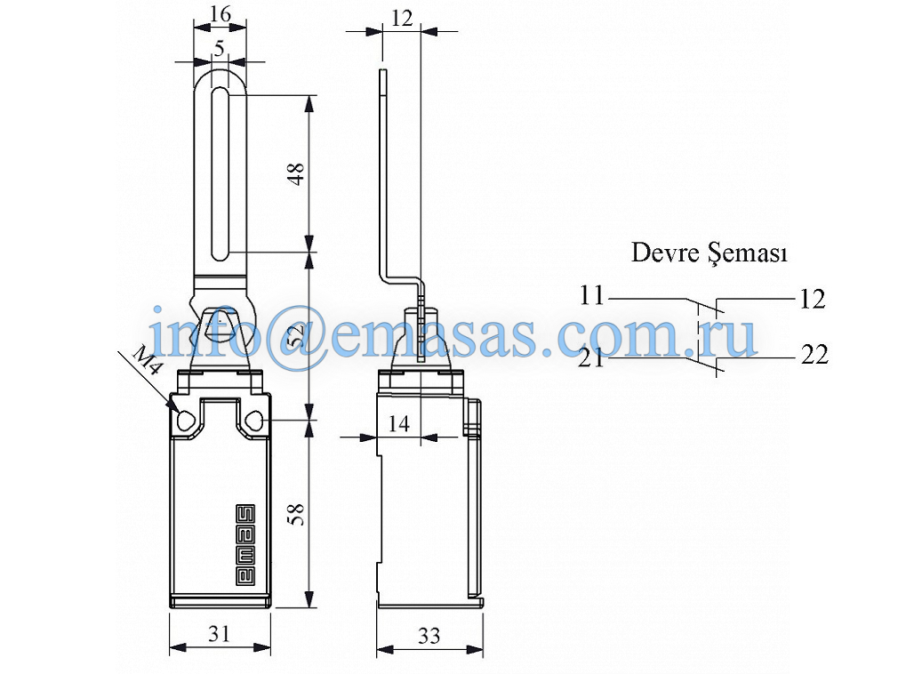Главная/ Продукция / Концевые выключатели / Серии L51 / Выключатель концевой быстрого переключения с металлической консолью, стальным изогнутым рычагом (2НЗ), L51K12LEM411
