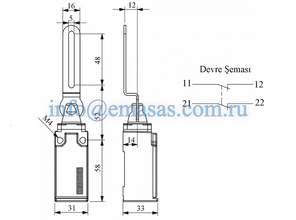 Главная/ Продукция / Концевые выключатели / Серии L51 / Выключатель концевой быстрого переключения с металлической консолью, стальным изогнутым рычагом (2НЗ), L51K12LEM621