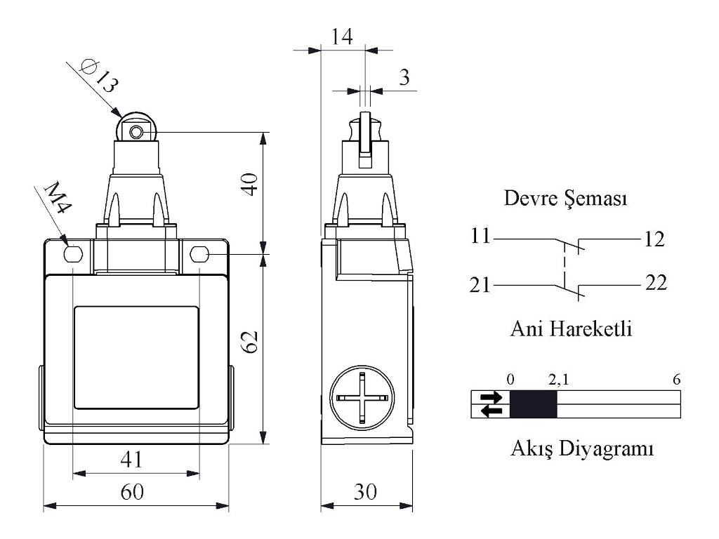 Главная/ Продукция / Концевые выключатели / Серии L53 / Выключатель концевой быстрого переключения линейный 3-х направленный с металлической консолью и стальным плунжером с металлическим роликом Ф13мм (2НЗ), L53K12MUM331
