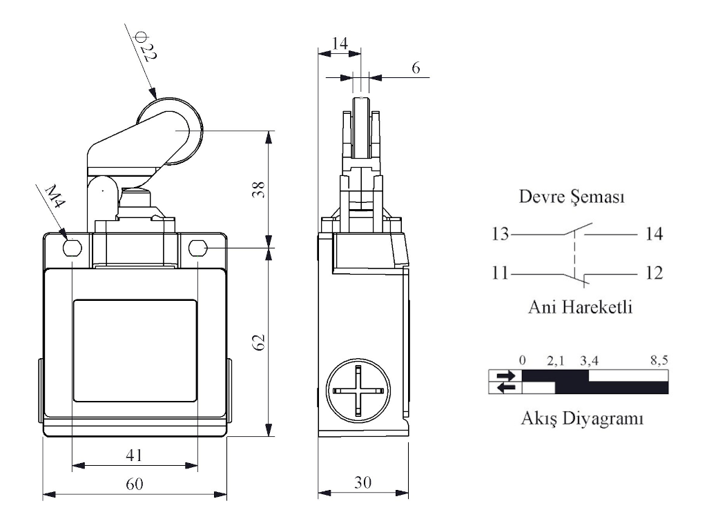 Выключатель концевой быстрого переключения угловой 1-но направленный с металлической консолью и упором с металлическим роликом Ф22 мм (1НО+1НЗ), L53K13MIM211