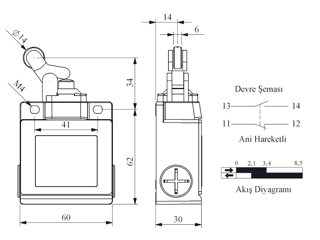 Главная/ Продукция / Концевые выключатели / Серии L53 / Выключатель концевой быстрого переключения угловой 1-но направленный с металлической консолью и упором с металлическим роликом Ф14 мм (1НО+1НЗ), L53K13MIM411