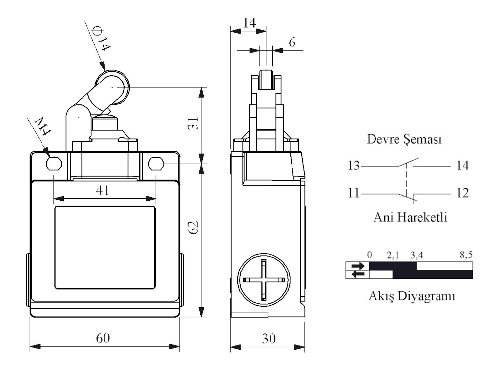 Главная/ Продукция / Концевые выключатели / Серии L53 / Выключатель концевой быстрого переключения угловой 1-но направленный с металлической консолью и упором с пластиковым роликом Ф14 мм (1НО+1НЗ), L53K13MIP311