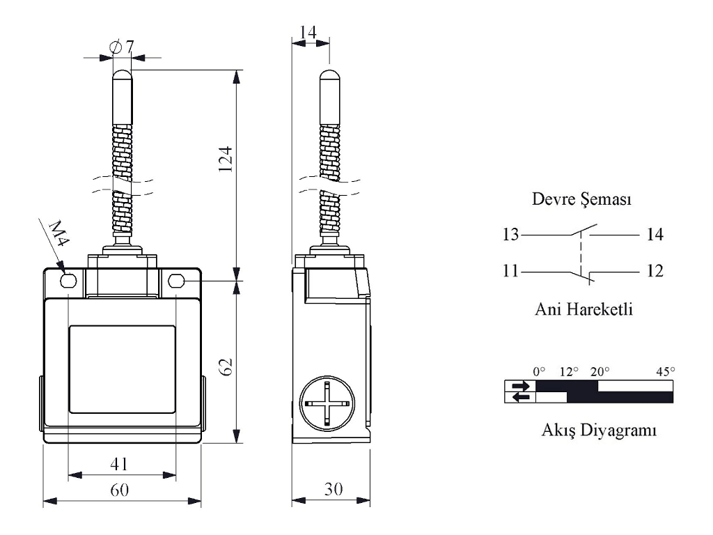 Выключатель концевой быстрого переключения многонаправленный с пластмассовой консолью и металлической пружиной, металлическим наконечником (1НО+1НЗ), L53K13SOM102