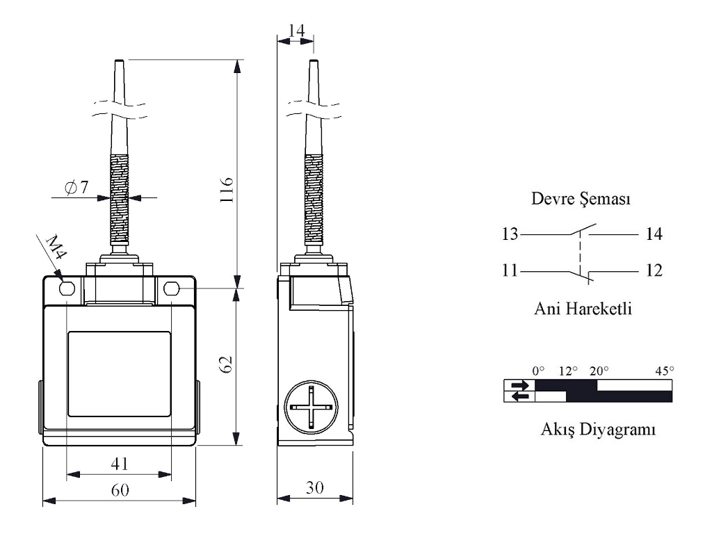 Выключатель концевой быстрого переключения многонаправленный с пластмассовой консолью и стальной пружиной, пластмассовый наконечник-конус (1НО+1НЗ), L53K13SOP101