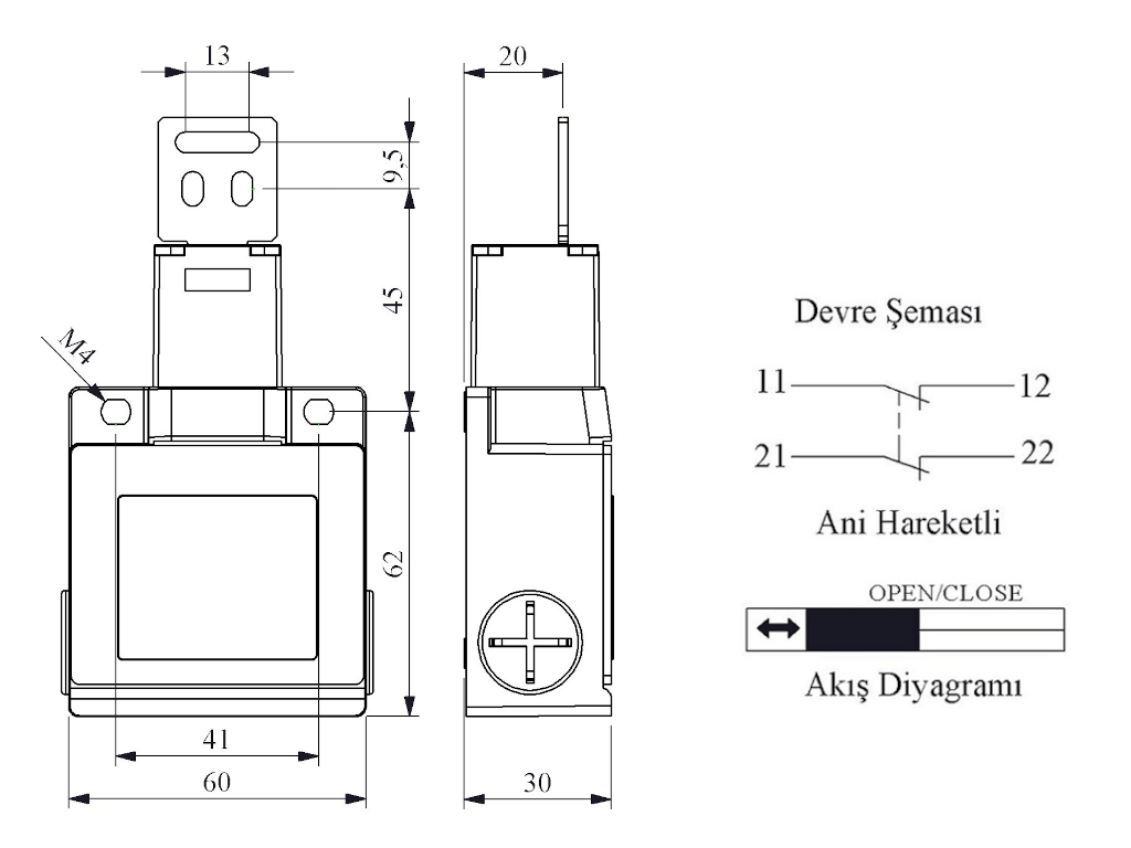 Выключатель концевой синхронного переключения с металлической консолью, стальным кронштейном направлен вверх (2НЗ), L53K22LUM322