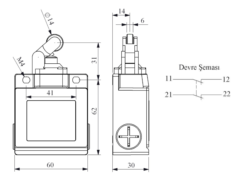 Выключатель концевой синхронного переключения угловой 1-но направленный с металлической консолью и упором с металлическим роликом Ф14 мм (2НЗ), L53K22MIM311