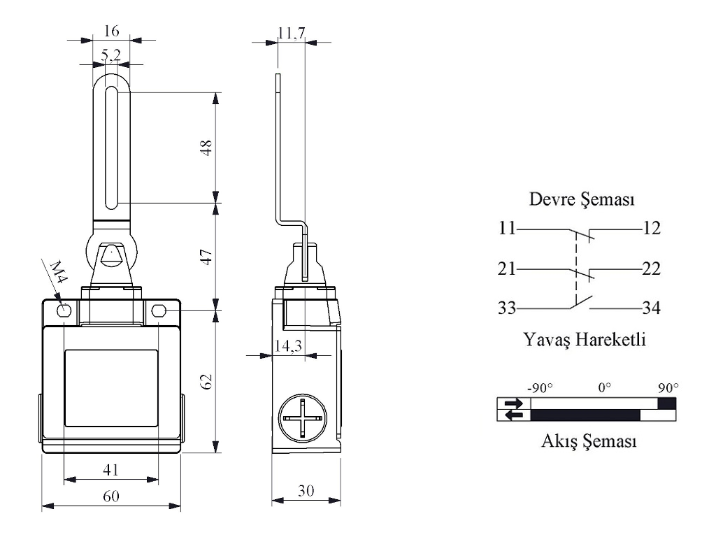 Главная/ Продукция / Концевые выключатели / Серии L53 / Выключатель концевой синхронного переключения с металлической консолью, стальным изогнутым рычагом (1НО+2НЗ), L53K25LEM621