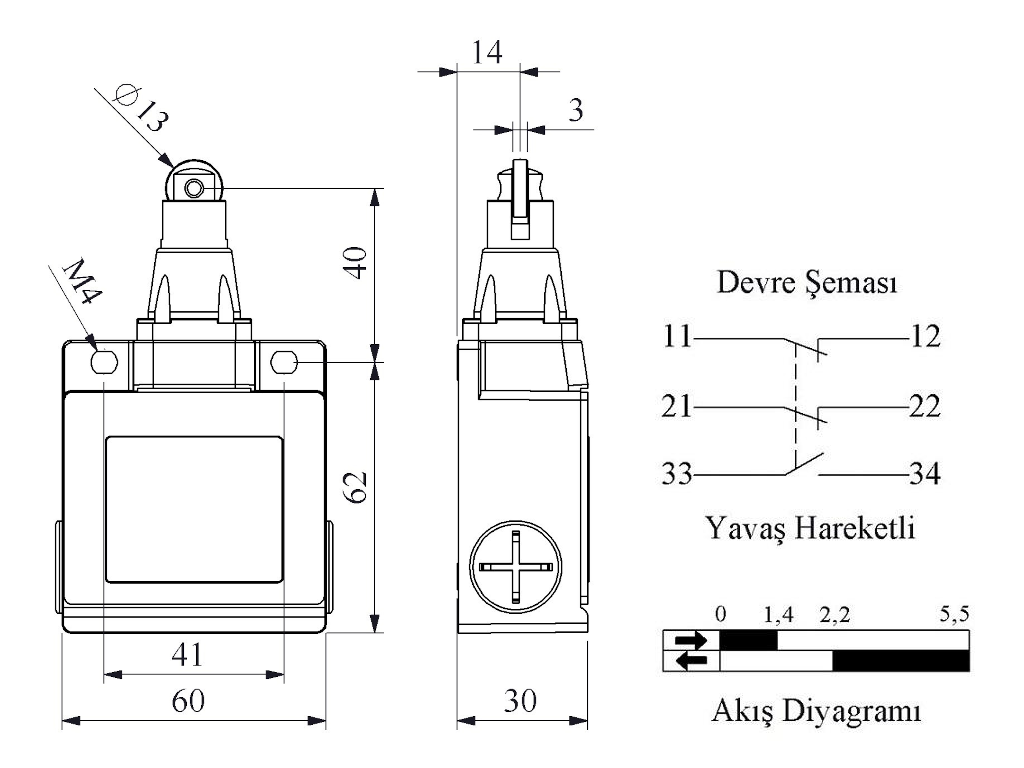 Главная/ Продукция / Концевые выключатели / Серии L53 / Выключатель концевой синхронного переключения линейный 3-х направленный с металлической консолью и стальным плунжером с металлическим роликом Ф13мм (1НО+2НЗ), L53K25MUM331