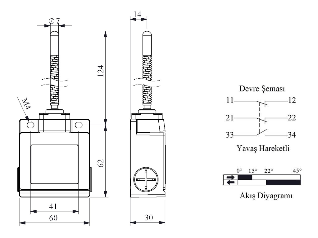 Выключатель концевой синхронного переключения многонаправленный с пластмассовой консолью и металлической пружиной, металлическим наконечником (1НО+2НЗ), L53K25SOM102