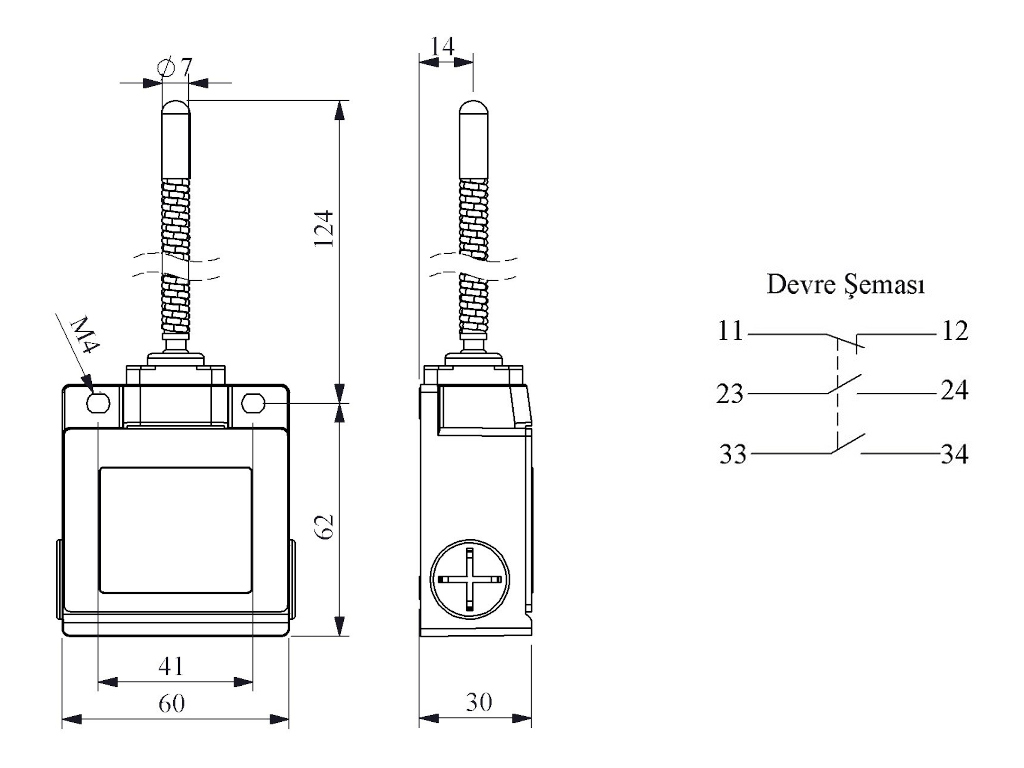 Выключатель концевой синхронного переключения многонаправленный с пластмассовой консолью и металлической пружиной, металлическим наконечником (2НО+1НЗ), L53K27SOM102