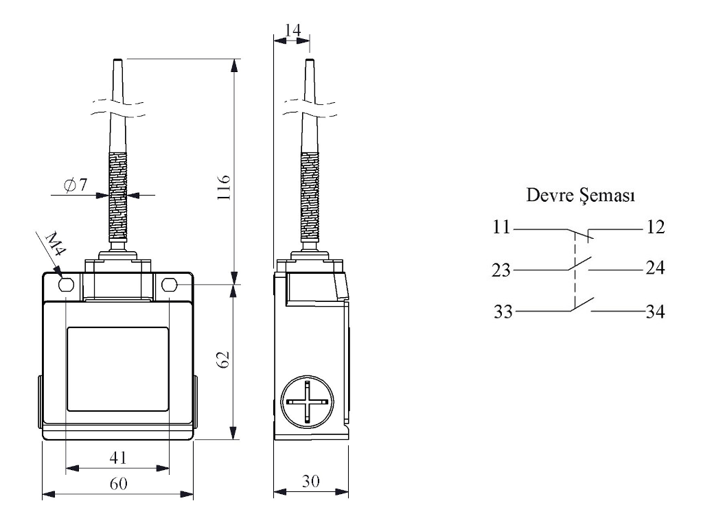 Выключатель концевой синхронного переключения многонаправленный с пластмассовой консолью и стальной пружиной, пластмассовый наконечник-конус (2НО+1НЗ), L53K27SOP101