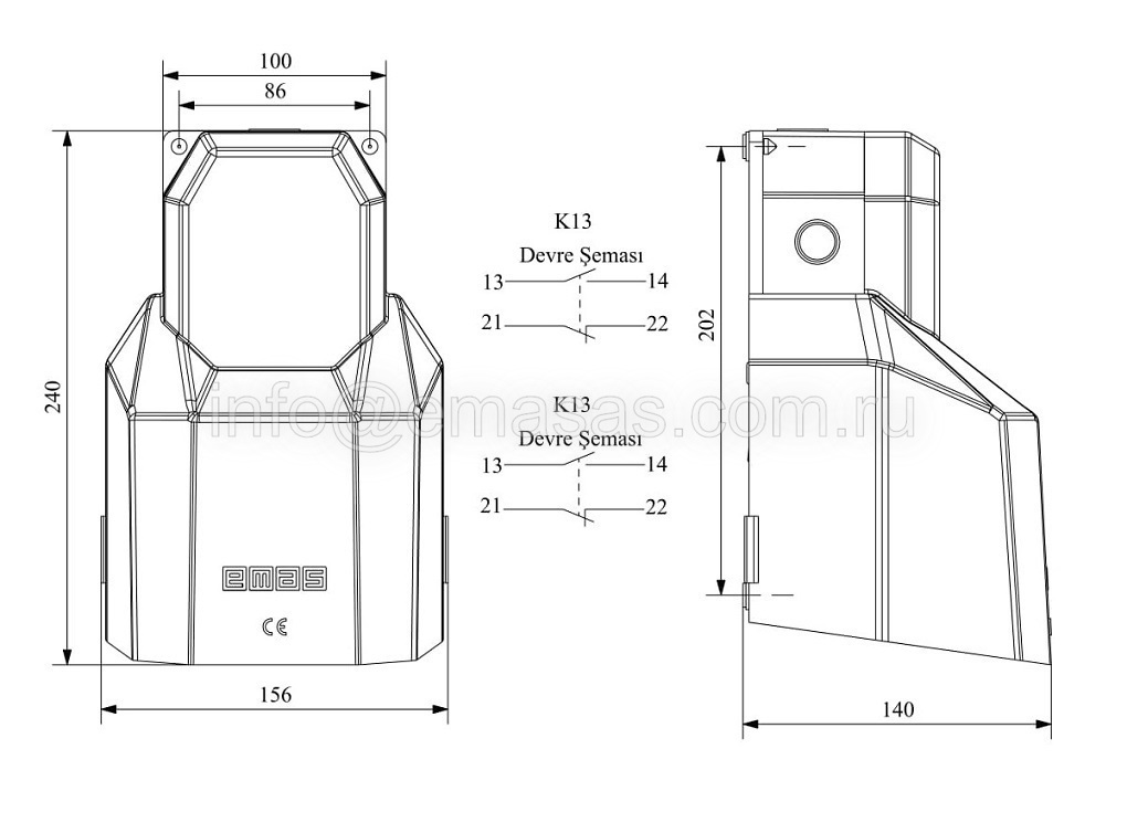 Одиночная педаль (1 скорость) с защитным кожухом 2x(1НО+1НЗ), PDKS11GX10T