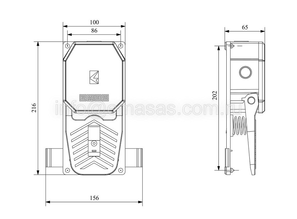 Главная/ Продукция / Педальные переключатели / Педали одиночные / Одиночная педаль (1 скорость) без защитного кожуха (XXX+XXX), PDNS11XX10