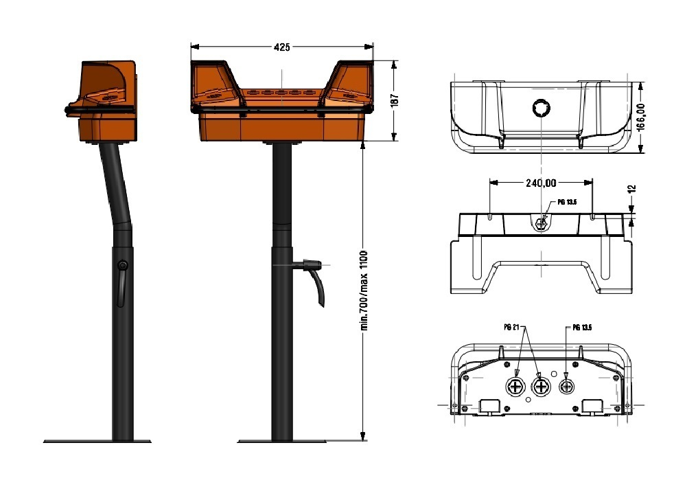 | Регулировка по высоте | от 700 мм / до 1100 мм | ||||||