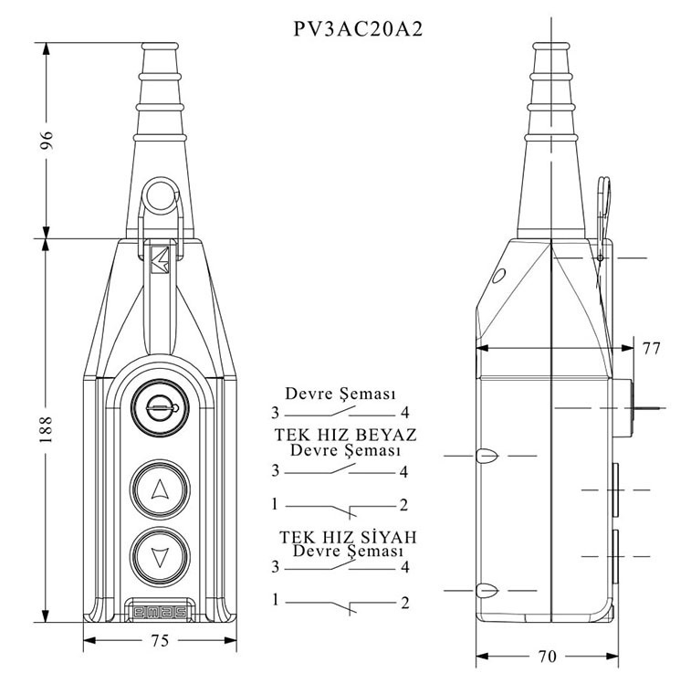 Главная/ Продукция / Пульты управления / Серия PV / Пульт управления 3-х кнопочный, 1-х скоростной, PV3AC20A2
