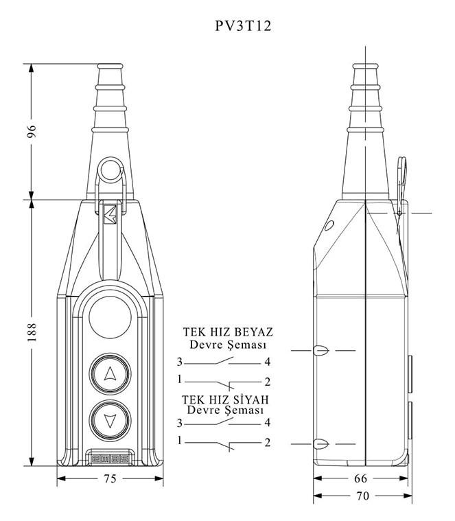 Главная/ Продукция / Пульты управления / Серия PV / Пульт управления 2-х кнопочный, 1-х скоростной, PV3T12