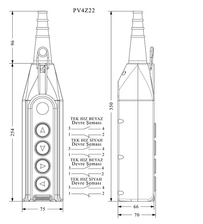 Пульт управления 4-х кнопочный, 1-х скоростной, PV4Z22