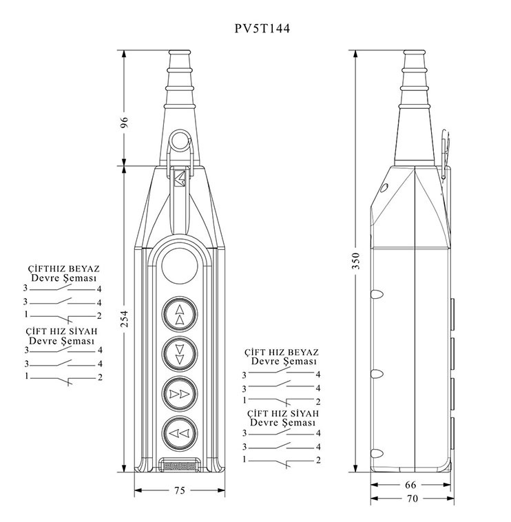 Главная/ Продукция / Пульты управления / Серия PV / Пульт управления 4-х кнопочный, 2-х скоростной, PV5T144