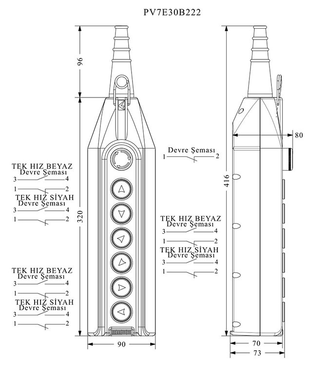 Главная/ Продукция / Пульты управления / Серия PV / Пульт управления 7-и кнопочный, 1-х скоростной, PV7E30B222