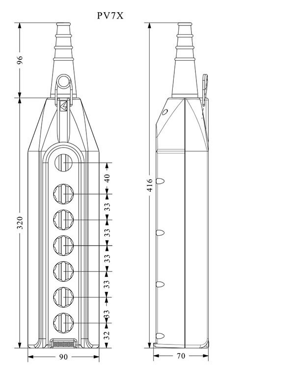 Главная/ Продукция / Пульты управления / Серия PV / Пульт управления 7-ми кнопочный, без блок-контактов и кнопок, PV7X