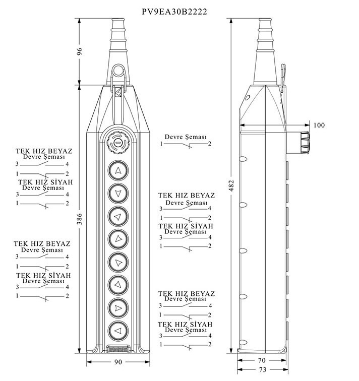 Главная/ Продукция / Пульты управления / Серия PV / Пульт управления 9-и кнопочный, 1-х скоростной, PV9EA30B2222