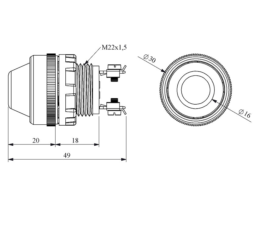| Установочный диаметр | 22 мм | ||||||